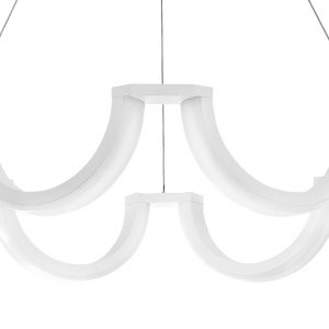 Soft, elliptic curves flow through this elegant form and give it a decidedly feminine look that meshes well with the effulgent LED light and powder white finish. While the rounded shapes give a subtle nod to traditional design, this chandelier is unequivocally modern, featuring the finest technology and materials along with an aesthetic that’s part minimalist, part sci-fi.