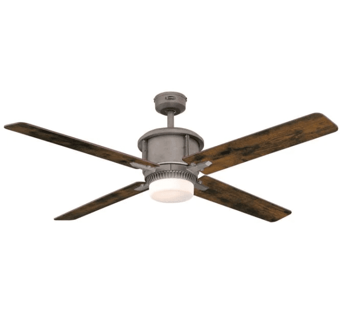 $149.99 Quick View - Industrial steel finish, 4 reversible reclaimed hickory/pewter ash finish blades, opal frosted glass shade