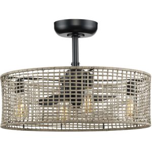 BLADES: 3 matte black blades rotate within the natural wicker frame with a charming lattice-like design coated in a lovely mocha finish for extra charm and depth.
