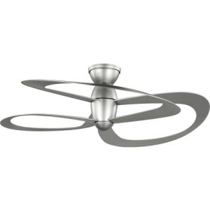 Finish: Swirling, ribbon-like blades, and a gleaming center hub are coated in a silver-painted nickel finish.